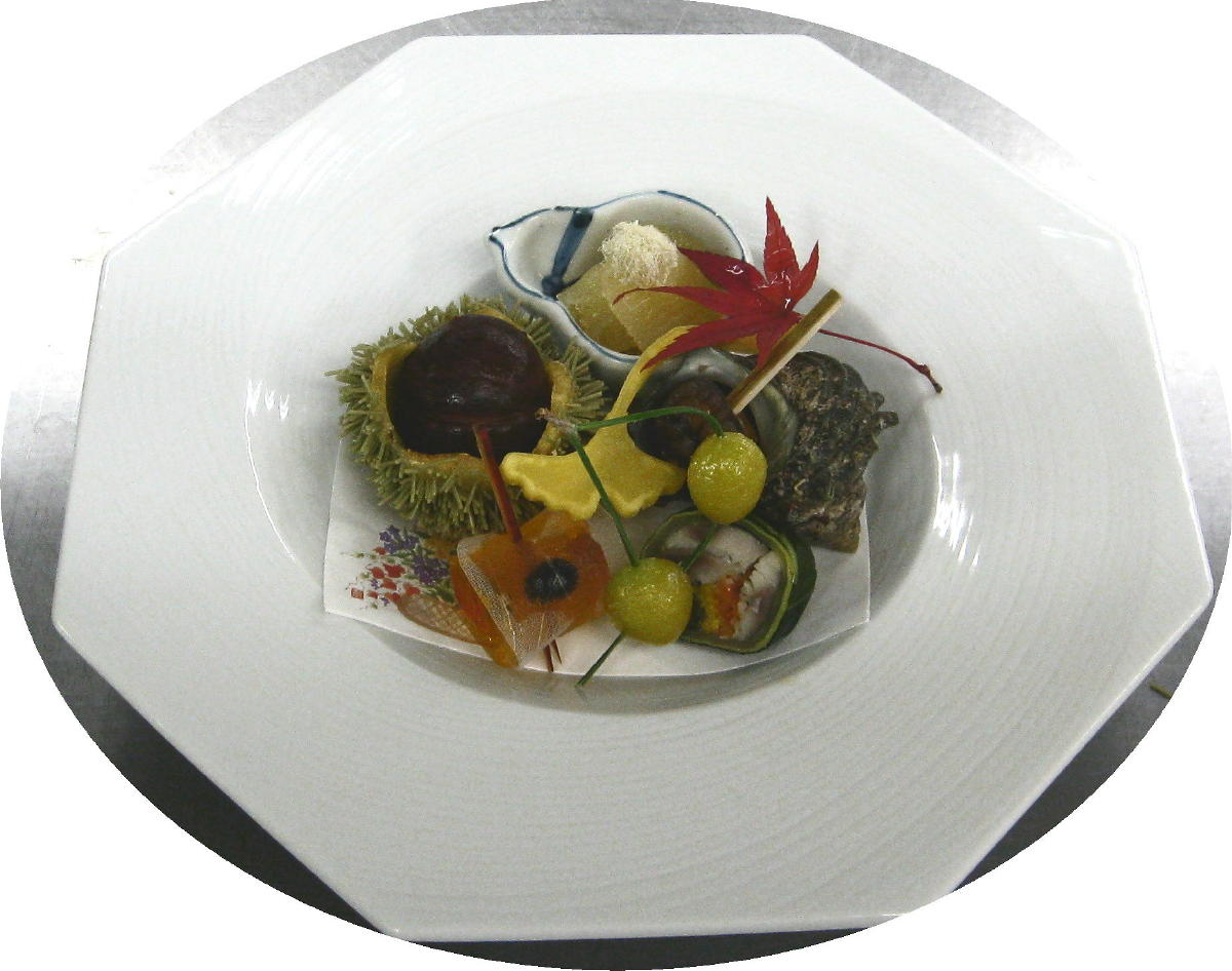 祝肴の 数の子 サザエ 渋皮栗 公孫樹芋 銀杏 等